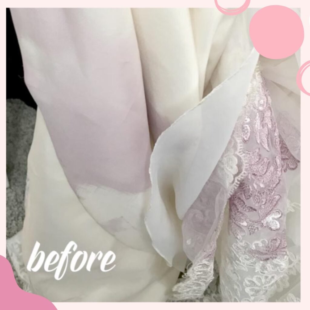 Đặc biệt với lụa, len, satin hoặc vải màu, hãy thử dung dịch ở phần gấu hoặc mặt trong để kiểm tra phản ứng.